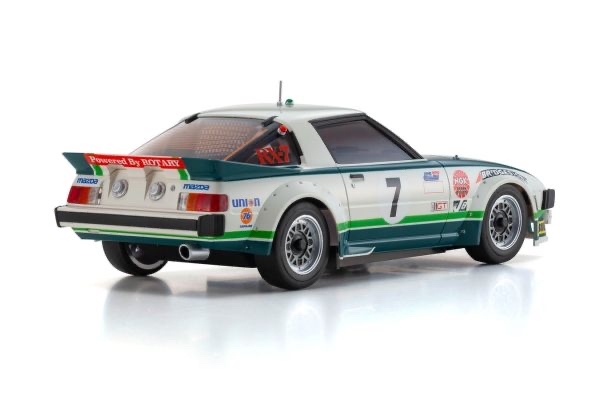 Latest high-performance MR-04 chassis Now the standard MINI-Z RWD model! Enjoy the full experience of high-performance R/C car racing right out of the box; just insert batteries into the car and transmitter. This is the simplicity of Kyosho Readyset packages. The small scale of the MINI-Z Racer is ideal for driving indoors and for people just becoming familiar with R/C cars. This MINI-Z RWD Readyset includes a renewed 2-wheel drive chassis at its core. Previous Readyset packages incorporated the 3rd generation MR-03 chassis, but the new RWD Readyset includes the 4th generation MR-04 chassis that was first released in 2023. While retaining some basic elements of the MR-03 design, the new MR-04 demonstrated its lower center of gravity and remodeled steering design with blistering speed and excellent handling in the top-of-the-line EVO2 debut model. The MR-04 chassis is mounted with R/C system and features a completed body finished to display model standard. This Readyset includes the same standard MR-04 chassis as other high-end MR-04 models and includes user-friendly 130-class brushed motor and the reliable Syncro KT-531P pistol grip transmitter. Just insert 4 x AAA alkaline batteries into both the car and the transmitter, and you’re ready for the fun to begin. High-performance comes straight from the standard setup, but you can tune up for elite-level performance with a wide range of MINI-Z optional parts. With its dynamic maneuverability display model finish, the updated MR-04 chassis takes the authentic R/C experience to a higher level. ※The separately sold LED light unit set (No. MZW429R) can be installed on the Mazda Savanna RX-7 (SA22C) “1979 Daytona GTU Class Winner No.7” when equipped with the open-type headlights.。 ●Authentic EP (electric) small scale R/C car that can be driven indoors. ●Readyset package includes fully assembled chassis, body and transmitter. ●Includes ultra reliable multi-function Syncro KT-531P transmitter. ●Features the MR-04 chassis, a major evolution from the previous MR-03 model. ●Includes high-quality painted body with decals applied, finished to display model standard. ●Compatible with all bodies for the MINI-Z racer series. *Motor case and differential gear assembly suitable for the body are required separately. ●Geared differential (gear diff) delivers smooth cornering. ●Full ball bearing specifications ●Can be fitted with an optional gyro unit for even easier control. Gyro sensitivity can be adjusted using the volume on the chassis. ●Compatible with wide range of MINI-Z Racer optional parts so you can enjoy tuning and enhancing your model.